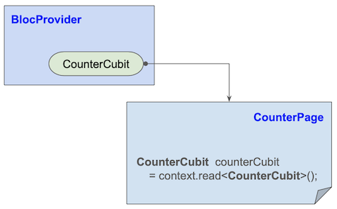 CounterCubit counterCubit = context.read<CounterCubit>();